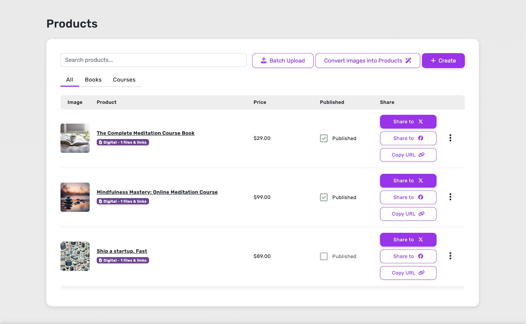 Check out your products and start sharing them.